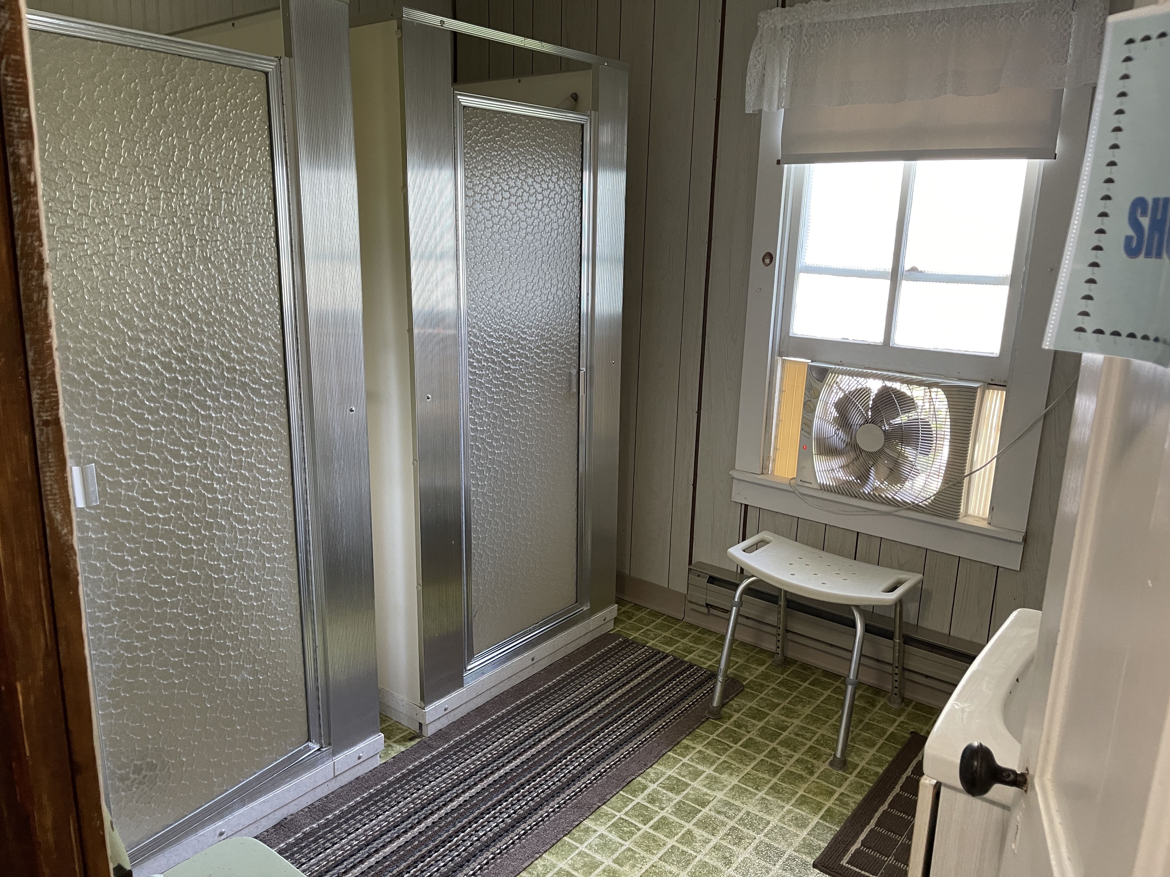 There is a shared men’s restroom and a separate women’s restroom with multiple stalls. There is also a separate men’s shower room and women’s shower room. Both are on the same floor as the guest rooms. All linens, blankets and pillows provided plus towels.